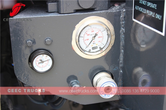 ** Alarme traseiro e câmera podem ser equipados. ** A válvula múltipla da Itália pode ser escolhida. ** Podem ser escolhidos recipientes de 240L (depósito simples ou duplo) ou recipientes padrão de 660 L, 1100 L com elevador de recipiente. |