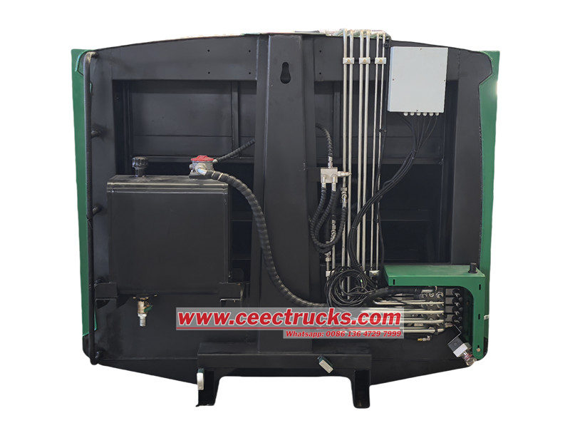 ● A carregadeira é um componente fundamental da estrutura do caminhão de coleta de lixo. Ela consiste na carroceria da carregadeira, na placa de deslizamento e na lâmina raspadora, todas construídas em aço de alta resistência para maior durabilidade.