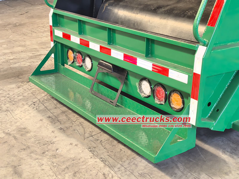 Para garantir a segurança operacional, a estrutura da carroceria do caminhão de coleta de lixo de 12 m³ está equipada com diversos recursos de segurança.