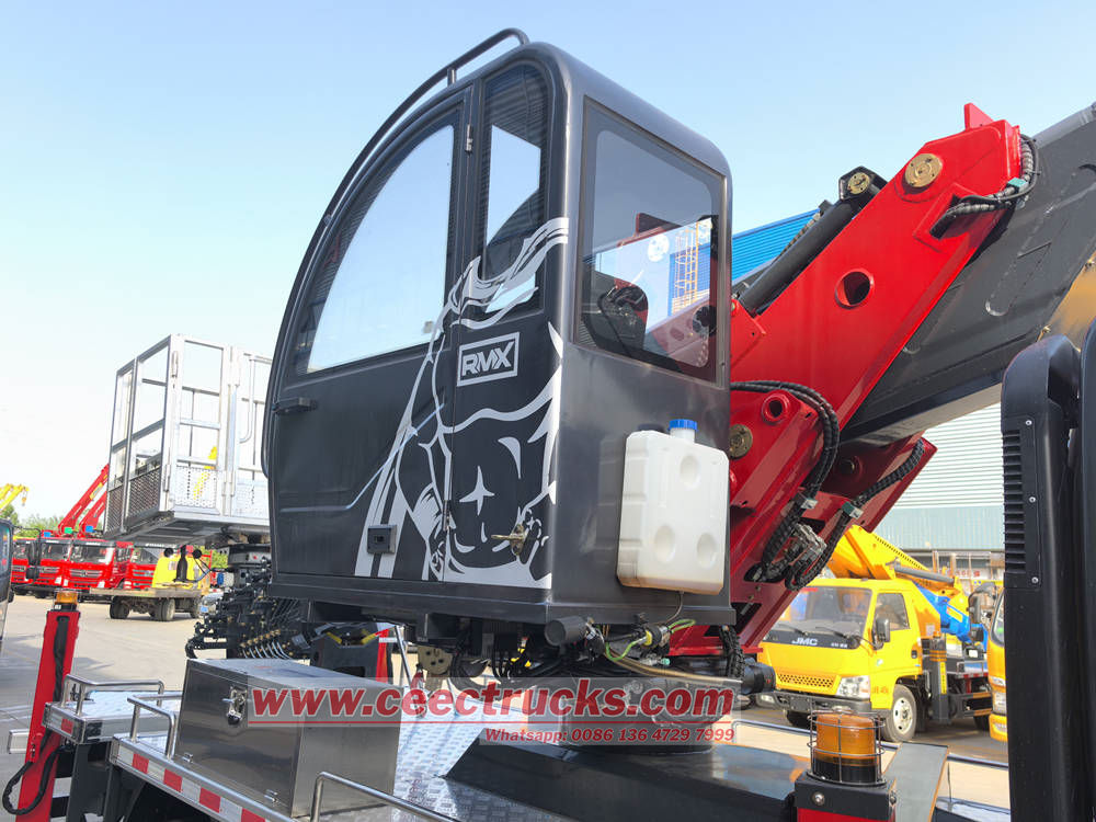 A plataforma de trabalho aéreo Isuzu KV100 adota um design de braço telescópico multisseção com amplo ângulo de extensão e operação flexível, podendo facilmente atingir alturas de difícil acesso para equipamentos comuns. O sistema operacional da plataforma é simples e claro, equipado com múltiplos modos de operação, como operação elétrica, controle remoto de solo, controlador de cesto e alavanca de operação de emergência, garantindo a segurança e a eficiência dos operadores.