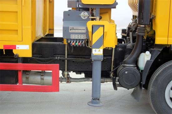 A lança é feita de aço de alta resistência com excelente resistência à flexão e torção, o que reduz seu próprio peso e melhora sua capacidade de carga. Os estabilizadores em forma de H são desdobrados horizontalmente e a largura é ajustável. Quanto maior a área de apoio, maior a capacidade anti-capotamento. A tecnologia de confluência multibomba permite que a lança se mova de forma sincronizada e suave, sem emperrar ou tremer, em ajustes telescópicos, de giro e de amplitude. O tanque de óleo hidráulico é equipado com um radiador independente para garantir que a temperatura do óleo seja ≤65°C após operação contínua (como 8 horas) para evitar perda de eficiência devido ao superaquecimento. Os principais grupos de válvulas (como válvulas de balanceamento e válvulas de alívio) utilizam marcas nacionais e estrangeiras de alta qualidade para reduzir o risco de vazamento interno. A superfície da lança é jateada com primer epóxi rico em zinco e acabamento em poliuretano para se adaptar à névoa salina e ambientes úmidos (como áreas costeiras).