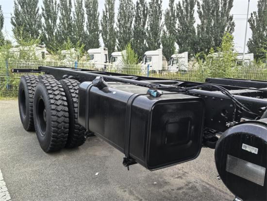 O chassi Beiben 6x6 com tração nas quatro rodas utiliza a cabine do modelo Beiben NG80 2638AP, possui tração integral, distância entre eixos de 4450+1450mm, está equipado com um motor Weichai WP10.380E32, uma caixa de câmbio Fast de 9 velocidades, um eixo dianteiro de 7 toneladas, um eixo traseiro duplo de 18 toneladas, pneus 12.00R20 e velocidade máxima de 90km/h.
