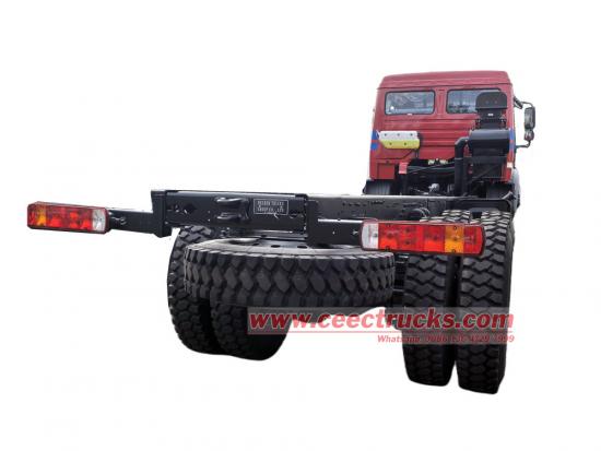 O chassi do caminhão de carga Beiben 6x6 com tração nas quatro rodas utiliza o chassi de cabine longa Beiben NG80B 2642APZ com distância entre eixos de 4450+1450 mm. É equipado com um motor Weichai WP12.420E32, uma caixa de câmbio Fast 12JS200TA, pneus 12.00R24, tração nas quatro rodas 6x6, sistema de direção hidráulica ZF8098, eixos com tecnologia alemã Mercedes-Benz, freios pneumáticos de sapata dupla de 7 toneladas no eixo dianteiro de tração, freios pneumáticos de sapata dupla de 18 toneladas com redutores nos cubos das rodas e um eixo traseiro de tração com dupla redução, capaz de transportar até 40 toneladas.