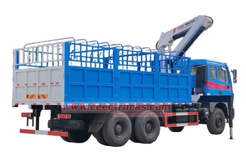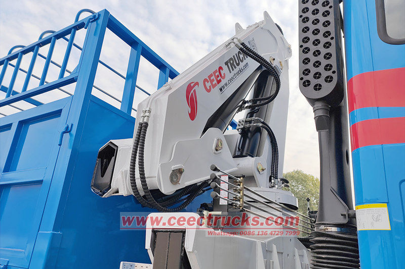 Caminhão de carga Beiben 2638 com lança articuladaÉ um equipamento eficiente que integra elevação e transporte. Sua principal característica é o design da lança dobrável, que economiza bastante espaço e possui grande capacidade de manobra. Acionado por um sistema hidráulico, pode atingir uma rotação completa de 360°, adequado para canteiros de obras estreitos ou condições de estrada complexas.