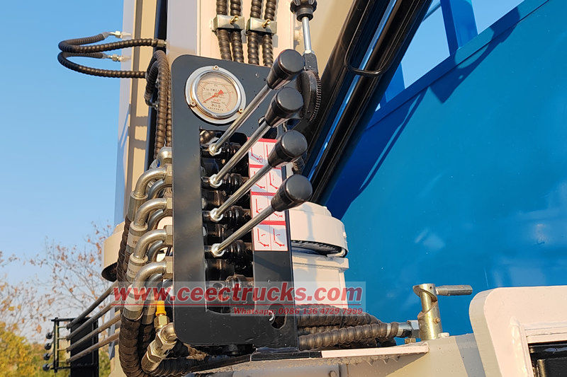 O caminhão com lança articulada Beiben 2638 também é chamado de guindaste de lança dobrável, guindaste de caminhão móvel, guindaste de braço dobrável montado em caminhão, guindaste de carregadeira articulada, etc.O veículo é equipado com um motor WP10.380E32 de 380 HP, potente e equipado com uma caixa de câmbio rápida de 12 velocidades, com trocas suaves. Na traseira da carroceria do veículo, encontra-se um guindaste SQZ105-3 com grande capacidade de elevação e alcance. Abaixo, encontra-se uma caçamba de carga de 5000 x 2500 x 550 mm que pode transportar facilmente objetos pesados içados pelo gancho do guindaste.