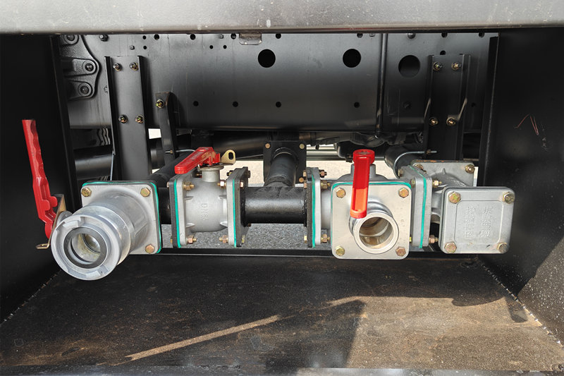 A tomada de força (PTO) aciona a bomba d'água para gerar pressão, que por sua vez leva a água do reservatório para diversos bicos, incluindo chuveiros frontais, traseiros, laterais e de altura, para atender a diversas necessidades operacionais. Caminhão-tanque de água Beiben 1929 Possui funções de autoescorvamento e autodrenagem, proporcionando um fornecimento de água flexível e eficiente, além de uma operação simples e confiável.