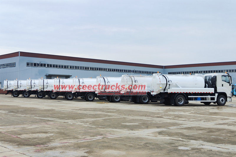 Durante a operação, o caminhão acopla-se a uma fossa séptica, esgoto ou obstrução de tubulação. A bomba de vácuo conecta-se ao recipiente de resíduos por meio de uma mangueira de sucção. Ao ser acionada, ela estabelece rapidamente um alto vácuo dentro do tanque, aproveitando a diferença de pressão para sugar com força resíduos líquidos ou semissólidos, como fezes, esgoto e lodo, para dentro do tanque.