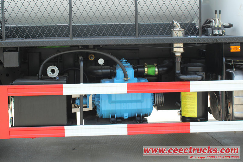 Após a conclusão da operação, a bomba de vácuo também auxilia na descarga pressurizada dos resíduos do tanque, adaptando-se às necessidades de diversos locais de descarte e fornecendo suporte de energia confiável para a remoção contínua e eficiente dos resíduos pelo caminhão de sucção.
