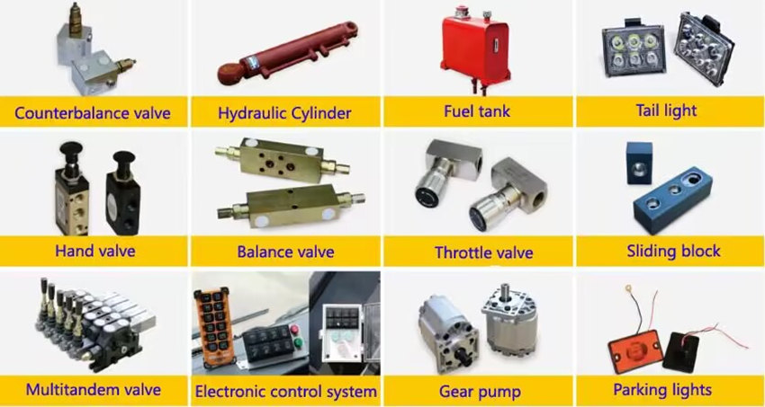 ♦ Componentes: Inclui uma bomba hidráulica, válvula direcional de múltiplas vias, cilindros hidráulicos, tanque de óleo e tubulação.
