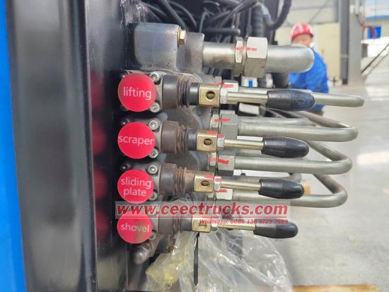 ● Utilizando um sistema hidráulico de precisão e um módulo de controle eletrônico inteligente para alcançar uma coordenação precisa entre as lâminas raspadoras e empurradoras, melhorando a taxa de compressão;