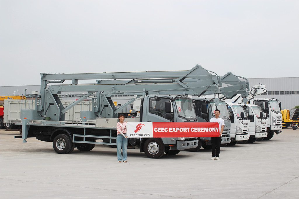 Em agosto de 2024, a CEEC exportou com sucesso cinco plataformas de trabalho aéreo ISUZU para Djibouti, incluindo três plataformas de trabalho aéreo com lança articulada ISUZU NPR 19m e duas plataformas de trabalho aéreo com lança telescópica ISUZU NKR 20m. A entrega bem-sucedida desses veículos não apenas demonstrou a tecnologia líder da CEEC na fabricação de ISUZU caminhões de plataforma de trabalho aéreo, mas também refletiu seu profundo entendimento das necessidades do cliente e capacidades de resposta rápida.