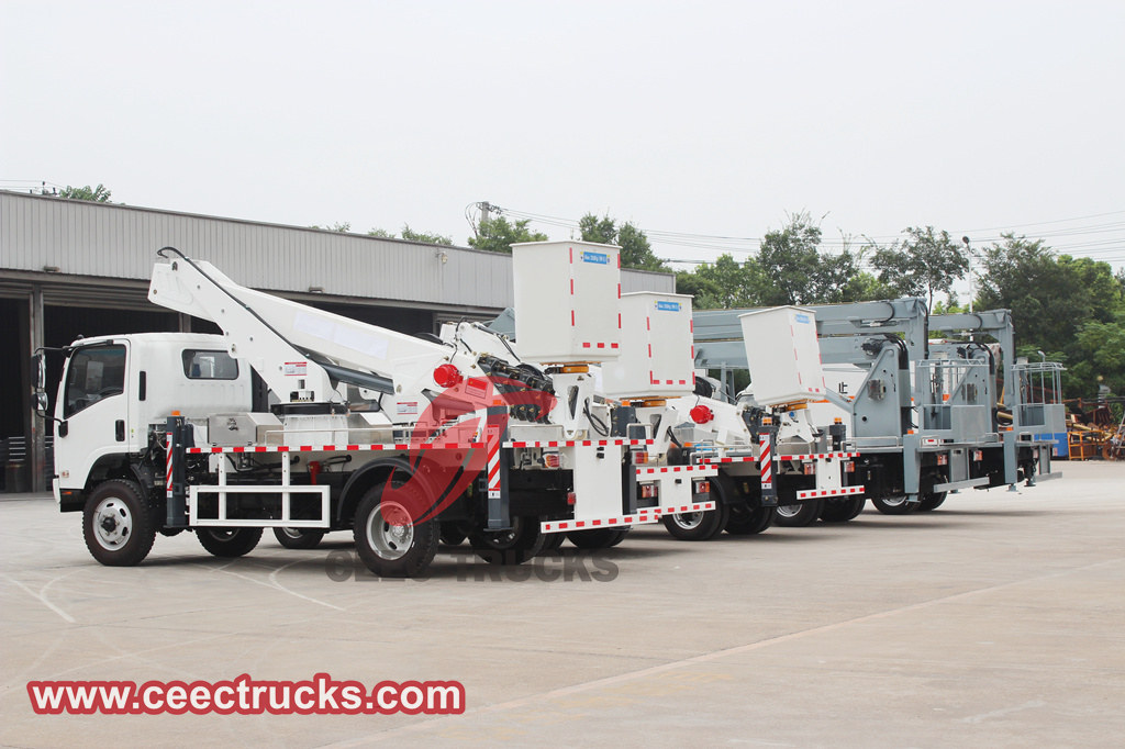 Caminhões de plataforma de trabalho aéreo ISUZUsão conhecidos por seu desempenho estável e confiável, operabilidade flexível e capacidades de trabalho eficientes. O modelo de lança articulada ISUZU de 19 metros, com seu design de corpo compacto e poderosas capacidades de extensão, pode operar com flexibilidade em espaços estreitos; enquanto a plataforma de trabalho aéreo com lança telescópica ISUZU de 20 metros, com maior altura operacional e cobertura mais ampla, é adequada para a manutenção e construção de grandes edifícios. Ao mesmo tempo que garante o desempenho do veículo, o CEEC também presta atenção à experiência do utilizador, otimizando a interface de operação e o sistema de controlo para tornar as operações mais simples e reduzir a intensidade de trabalho dos operadores.