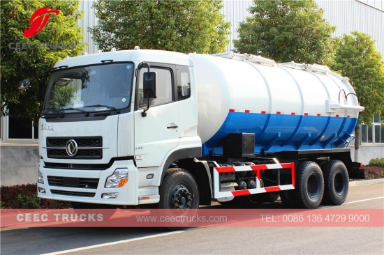 Fabricação de venda Dongfeng 16000L fossa vazia, que usa motor diesel America CUMMINS 210HP, caixa de câmbio manual de 8 turnos, caminhão-tanque de material de aço de alta resistência pode ter até 16cbm, bomba de vácuo WEILONG como padrão, dispositivo de elevação hidráulica para elevação de tanque, pintura e logotipos dependem de solicitação.