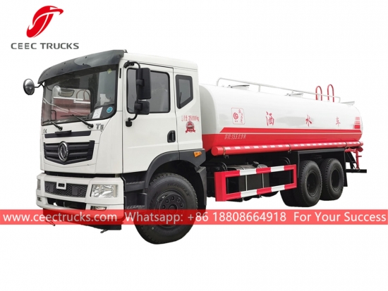 Caminhão-pipa DONGFENG 16.000L, chassi DONGFENG 6x4 com volante à esquerda, caixa manual de 8 marchas, motor diesel CUMMINS 210HP, bomba d'água de marca famosa, com bico de pulverização dianteiro, intermediário e traseiro opcional. Todas as pinturas e logotipos dependem da necessidade.