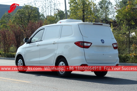 Mini caminhão frigorífico FOTON, CEEC Material plástico reforçado com fibra de vidro, espessura da camada isolante superior a 8mm. Unidades de resfriamento padrão America Carrier para alto desempenho. Chassi FOTON LHD, motor 115HP, caixa manual de 5 marchas.
