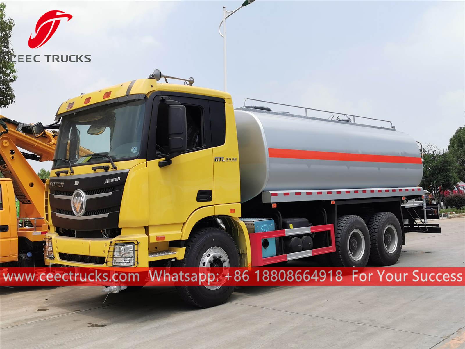 Caminhão de pulverização de água FOTON 20.000L, chassi FOTON 6x4, caixa de câmbio manual FAST de 8 turnos, motor diesel CUMMINS 245HP, bomba de água de marca famosa, com bico de pulverização dianteiro, intermediário e traseiro opcional. Todas as pinturas e logotipos dependem da necessidade.