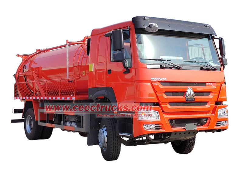 4X4, RHD drive type avaiableO caminhão-tanque de limpeza de esgoto Howo de 10 metros cúbicos é um veículo especializado, projetado para limpeza e transporte de esgoto, lodo e detritos sólidos. É amplamente utilizado em saneamento municipal, tratamento de esgoto, pecuária e outras áreas.
