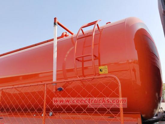 O tanque é meticulosamente fabricado em aço de alta qualidade e passa por um tratamento anticorrosivo especial, garantindo excelente resistência à corrosão. Ele pode suportar a erosão de diversos contaminantes por um longo período, prolongando a vida útil do veículo. A estrutura racional do tanque e o interior liso, sem cantos mortos, não só facilitam a descarga e a limpeza de contaminantes, como também reduzem a contaminação residual e previnem a contaminação secundária. Além disso, o tanque é equipado com diversos recursos de segurança, incluindo uma válvula de alívio e uma válvula de segurança. Estas são ativadas automaticamente quando a pressão ou o nível do líquido atinge um valor definido, garantindo uma operação segura.