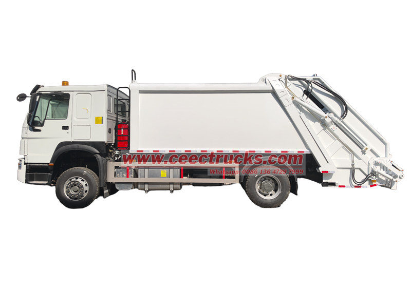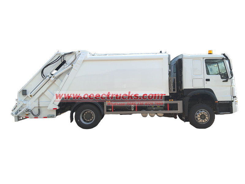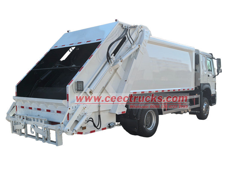 O caminhão compactador de carga traseira HOWO 14cbm (também chamado de caminhão compactador de resíduos, caminhão de lixo de carga lateral, caminhão compactador de lixo, caminhão de coleta de resíduos de carga traseira, caminhão compactador de lixo) é um novo tipo de veículo de saneamento especialmente usado para coletar, transferir e remover lixo.
