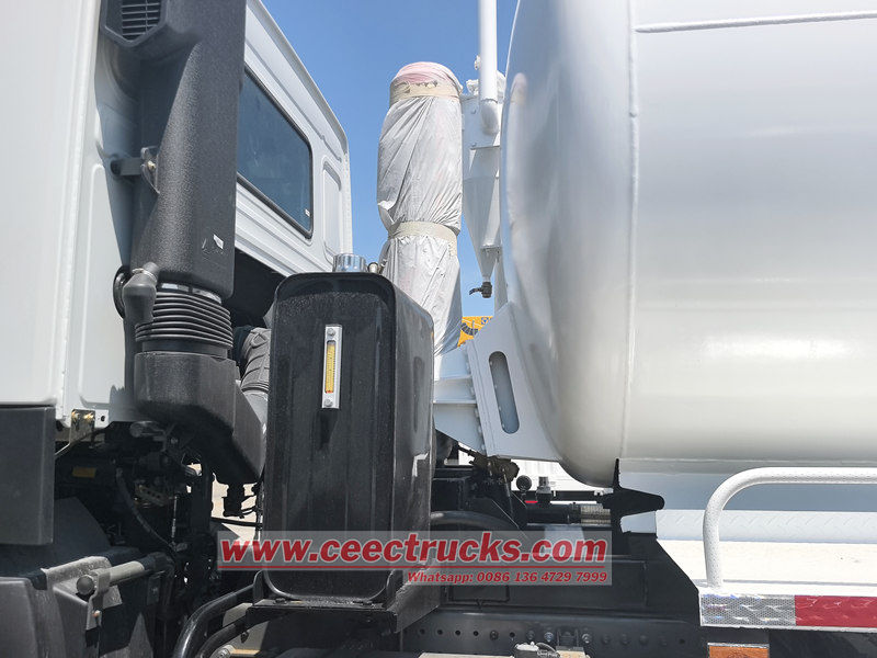 O caminhão-tanque a vácuo Howo de 20.000 litros é baseado no chassi HOWO 6x4, com distância entre eixos de 4325+1350 mm, pneus 12.00R20 (11 unidades), motor diesel WP12.400E32 de 400 hp e caixa de câmbio HW19710 com 10 marchas à frente e 2 à ré, além de direção ZF8198. É potente e fácil de operar. Possui funções de autoescorvamento, autolimpeza e autodescarga. Com forte sucção e alta eficiência, o tanque pode ser enchido e esvaziado rapidamente em uma única operação.