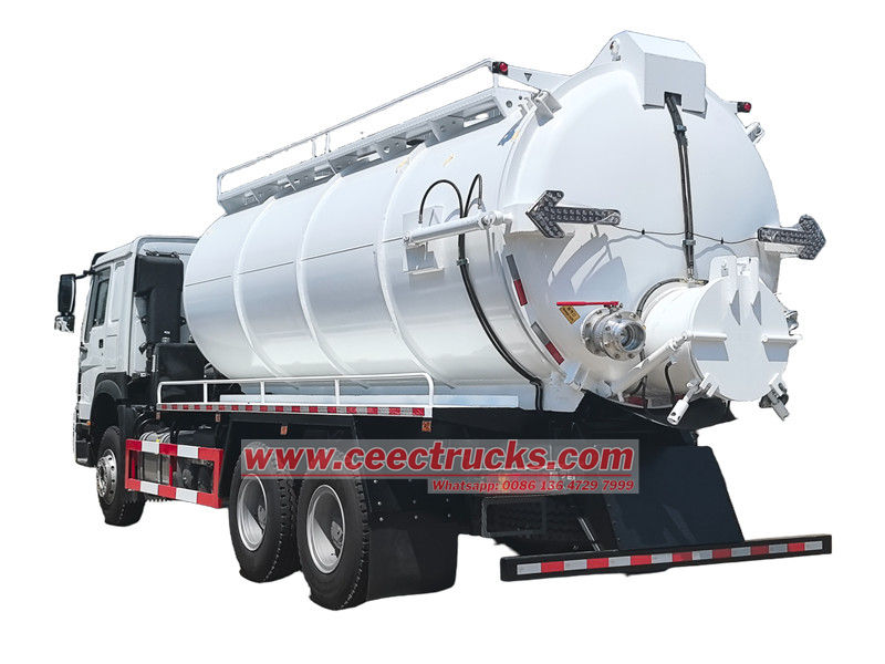 RHD, Jurop vacuum pump avaiableO caminhão-tanque a vácuo Howo de 20.000 litros é um veículo especializado projetado para saneamento urbano e tratamento de águas residuais industriais, usado principalmente para sucção, transporte e descarga de lodo, esgoto e sedimentos mistos.