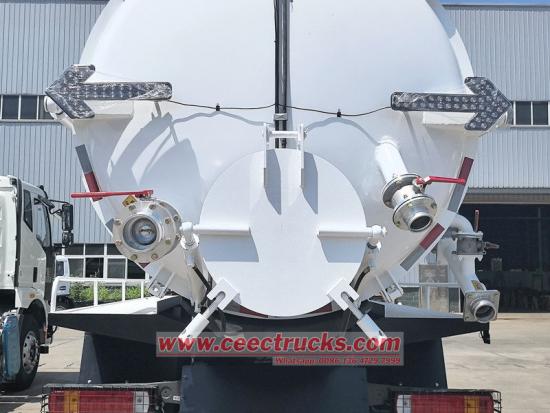 ● O caminhão utiliza tecnologia sofisticada de bomba de vácuo nacional, oferecendo alta potência de sucção e desempenho estável, permitindo operação contínua em longas distâncias e em poços profundos. O tanque apresenta uma estrutura cônica totalmente fechada, oferecendo excelente vedação e alta capacidade de suportar pressão, garantindo operação segura e confiável mesmo sob alta pressão negativa.