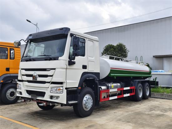 HOWO HW76, NX cabin is optionalO Caminhão-Pipa HOWO 6×4 é um veículo ecológico multifuncional de saneamento, modificado sobre o chassi SINOTRUK HOWO ZZ1257 6×4. Ele é equipado com um tanque de água de aço carbono de 20.000 litros, uma bomba d'água tipo 80QZ60/90 e um sistema de aspersão. O veículo opera utilizando sua bomba interna para autoabastecer a água de fontes externas e, em seguida, transportá-la sob pressão para aspersores dianteiros, traseiros e laterais, além de um canhão de água com alcance de ≥35 metros, possibilitando diversos modos de pulverização.