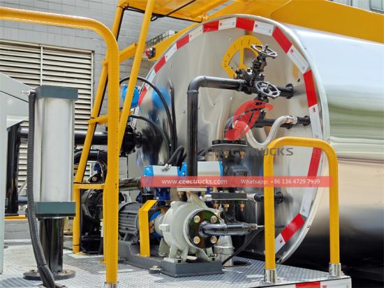 Tecnologia de tanque de isolamento de camada dupla:O tanque de asfalto de 3000L possui uma camada de isolamento de amianto de 80 mm de espessura + placa externa fosca de aço inoxidável, e a queda de temperatura em 8 horas é de ≤12°C, o que reduz significativamente o número de aquecimentos repetidos do asfalto e o consumo de combustível. O design da placa anti-ondas integrada evita que o asfalto trema e respingue durante o transporte, aumentando a segurança.