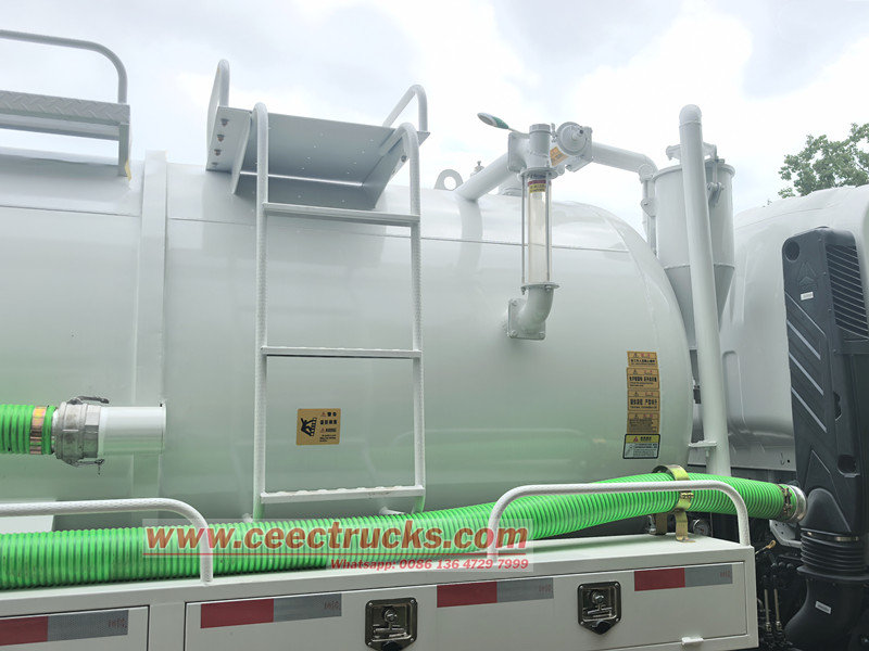 ➤ O caminhão está equipado com uma bomba de vácuo de alto desempenho e um manômetro de vácuo, gerando continuamente uma forte pressão negativa para garantir uma sucção eficiente.