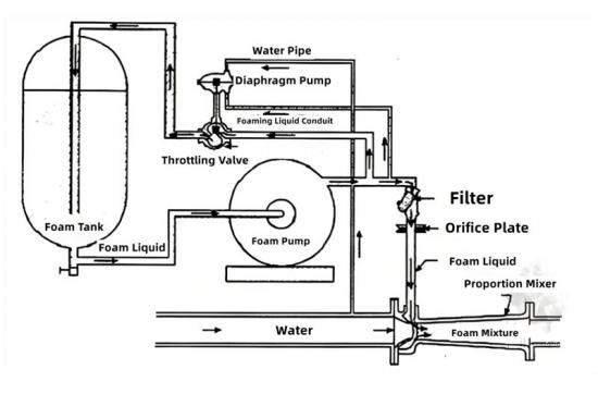 A precise electronic or mechanical proportioner precisely mixes the water and foam concentrate at a preset ratio (typically 0.1% to 6%) to form a "foam solution."