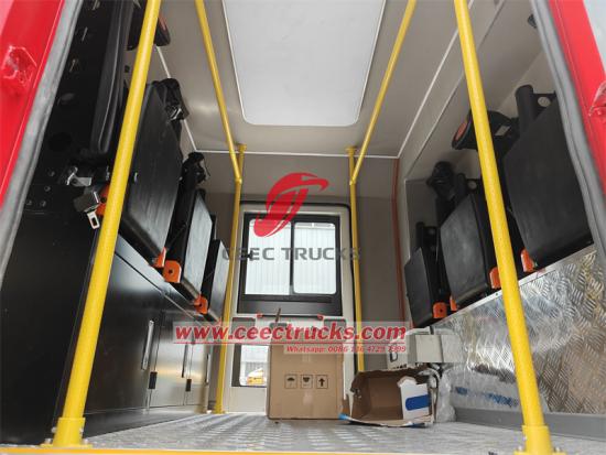 Customized independent SCBA seats cabinMotor de combate a incêndio de espuma de água HOWO de 7000 litros, fabricados pela POWERSTAR TRUCKS, são modificados no chassi do caminhão offroad HOWO 4X4, e a parte para fins especiais consiste em tanque de água, tanque de espuma, dispositivo de mistura, sala de bombas com bomba de incêndio, monitor de incêndio, carretel de mangueira, sistema de tubulação, sistema de transmissão e saída de energia e sistema elétrico.Caminhão de bombeamento de espuma Howo AWDÉ um veículo de resposta a emergências altamente capaz, projetado para operações de combate a incêndios. Ele adota recursos avançados, como um chassi de caminhão HOWO AWD com tração integral 4x4, garantindo um equilíbrio entre potência, manobrabilidade e estabilidade. Equipado com um motor a diesel WEICHAI WP12.400E201 com 400 HP, em conformidade com os padrões de emissões Euro 3 e com capacidade de emissão de 11.596 cc, oCaminhão de bombeiros HOWOoferece forte desempenho, mantendo as considerações ambientais.