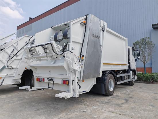 Rear tilting device for 360L and 1100L metal binsO Howo NX garbage rear loader truck is a high efficiency equipment specifically designed for urban waste management. It employs advanced comp actor technology to significantly reduce the volume of garbage, thereby enhancing transportation efficiency, decreasing the number of transport trips, and lowering operational costs. Built on the Howo NX heavy chassis, the garbage rear loader is equipped with a 370 HP Howo engine and HW 10 -speed transmission, offering robust power performance and stable driving capabilities. With its compact design and easy operation, the Howo NX 16CBM garbage compactor is suitable for garbage collection and transportation in various environments, including cities and townships.
