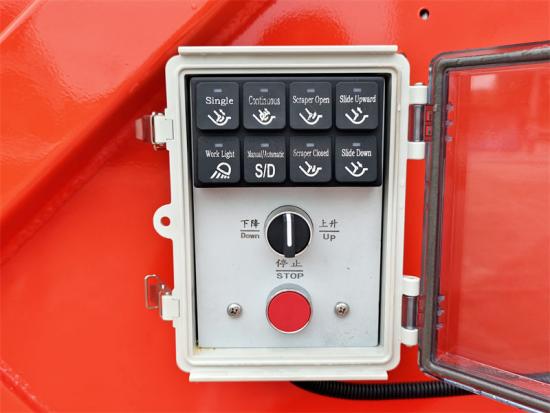 O Como caminhão compactador de lixo adota uma frente avançada de 12 e 2 caixa de câmbio traseira, combinada com uma 6 *Forma de tração de 4 eixos para garantir estabilidade e eficiência em condições de estrada complexas. O 2 5CBM O corpo curvo do tanque é feito de aço especial Q235, com 4 mm de espessura e processo de moldagem por injeção. ator A proporção chega a 1:3,4, garantindo a melhor coleta de lixo possível. ator eficiência. O sistema de controle hidráulico totalmente automático possui um ciclo de carga e descarga de apenas 40 a 45 segundos e está equipado com controle inteligente PLC, o que facilita e agiliza a operação. No modo manual, o operador pode utilizar a alavanca de operação e os botões de controle elétrico para realizar operações como compressão. ator e descarregar o compartimento de lixo.