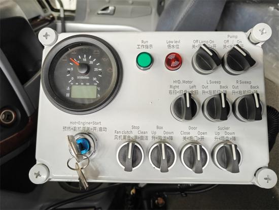 Possui um total de 4 escovas mecânicas e 1 disco de sucção montados na parte traseira, acionado por um motor hidráulico. A velocidade é ajustável, pode ser controlada independentemente e possui função de desvio automático. |