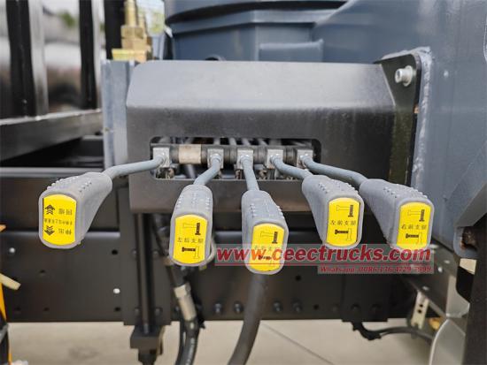 O veículo foi modificado com base no chassi HOWO 4x2 Classe II, com distância entre eixos de 4500 mm, levando em consideração a estabilidade da carga e a transitabilidade. O design de distância entre eixos curta reduz o raio de giro do veículo, sendo adequado para vias urbanas estreitas ou canteiros de obras complexos. O chassi adota uma estrutura de aço de alta resistência, com capacidade de carga no eixo dianteiro de 6,5 toneladas e no eixo traseiro de 11,5 toneladas, garantindo resistência à torção e durabilidade sob condições de carga pesada.