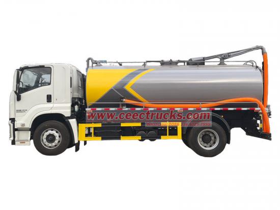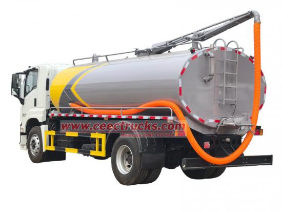 O caminhão-tanque esvaziador de fossa séptica Isuzu de 10.000 litros é um veículo especial usado para coletar, transferir e transportar fezes, esgoto e outros resíduos. Ele é modificado no chassi da cabine Isuzu FTR 4X, com distância entre eixos de 4.500 mm, ar-condicionado, USB e assistência de direção. Equipado com motor a diesel Isuzu 4HK1-TC60 de 205 HP, 4 cilindros em linha.