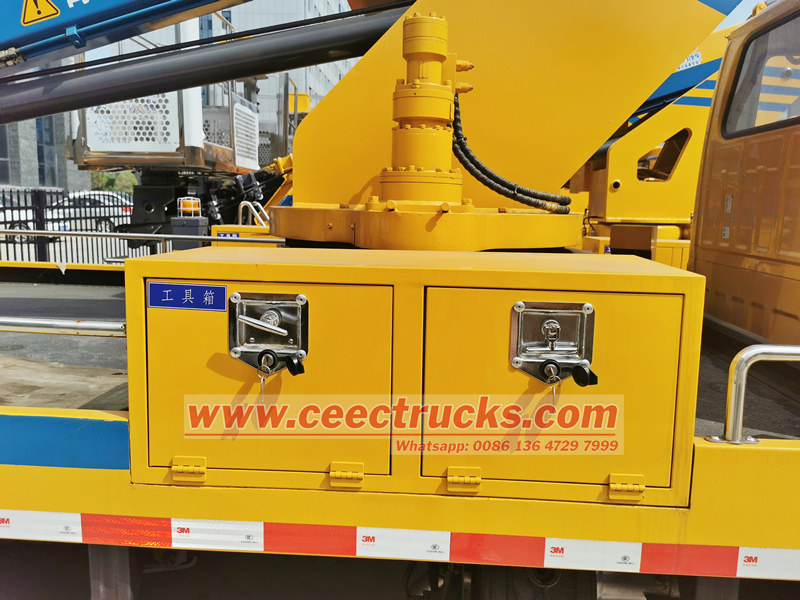 6 Recursos e detalhes avançados: Inversores e interruptores de energia do caminhão, alça de estabilização humanizada, soquete de energia de energia de emergência 220V, braço telescópico de vários estágios fora do carretel de tubo para facilitar a manutenção, o braço de 5 seções e o braço telescópico sincronizado, o material 960 de aço 960, as pernas do tipo caixa quadrada são estáveis e confiáveis