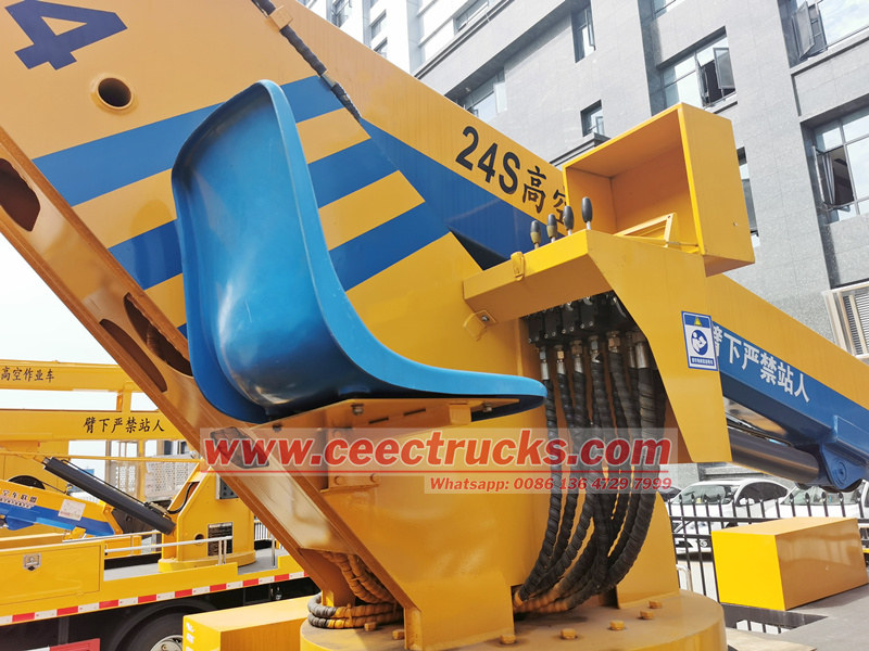 Caminhão de elevação aérea de caminhões CEEC A estrutura geral é feita de placas de aço de alta resistência, o que é seguro e confiável Está equipado com estabilizadores hidráulicos ajustáveis, com uma grande extensão e mais estável; Equipado com controle manual, controle elétrico, controle remoto e outros modos de operação, convenientes e rápidos; Ele também possui intertravamento, proteção de retiro suave, limite automático de altura de trabalho em ambiente perigoso e sistema de emergência automática para proteger a segurança do pessoal e a segurança da construção