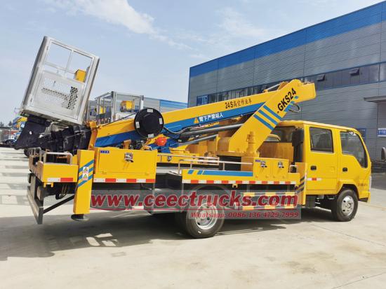 Caminhões CEEC Caminhões hidráulicos Caminhões de plataforma aérea montados com base no chassi de caminhão da linha dupla 4x2 do tipo II ISUZU, montados com 4 portas e 2 linhas totalmente 2+4 assentos, os braços telescópicos podem atingir 24 metros de altura de operações de ar, decoração amplamente usada em manutenção de ruas, trabalhos de paisagem, videoclipes, engenharia de comunicações, aeroporto, decoração, publicidade aerona