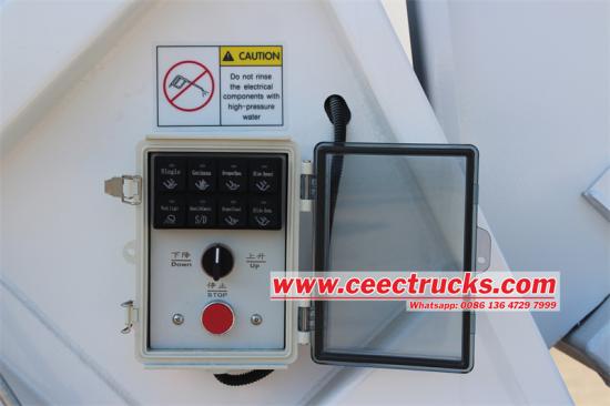 A caixa de controle eletrônico da cabine integra uma variedade de botões de função, incluindo parada e start, decolagem de energia, luz de trabalho, porta traseira para cima/para baixo, modo de carregamento, modo de descarga, push/puxador de pá, etc A caixa de controle eletrônica pode realizar a operação automática do caminhão de lixo, como a compressão de lixo, a operação, a operação etc