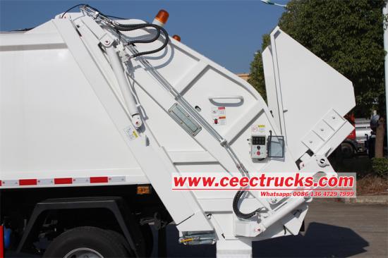 O lado do motorista está equipado com uma alavanca de operação hidráulica para controlar manualmente as ações principais do caminhão de lixo, incluindo pá, placa deslizante, raspador, rolagem, etc A alavanca operacional hidráulica fornece controle preciso e é adequado parao operador para fazer ajustes manuais no solo para garantir a flexibilidade da compressão de lixo e carga e descarregamento