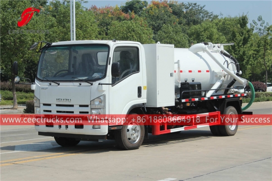 Filipinas ISUZU caminhão sugador de esgoto de 5.000 litros, ISUZU 4x2 com volante à esquerda chassi, caixa manual MLD de 6 marchas, motor diesel ISUZU 190HP, forte tanque de sucção, bomba de vácuo de marca famosa, todas as pinturas e logotipos dependem mediante exigência.