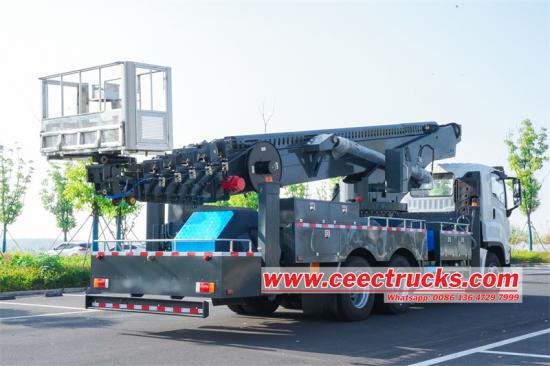 Nine-section fourteen-sided synchronous telescopic armIsuzu 56 M Caminhão de balde de elevação aérea é um equipamento profissional de trabalho aéreo que integra eficiência, segurança e confiabilidade O veículo está equipado com o poderoso motor de Isuzu e uma caixa de engrenagens de 9 velocidades rápida, equipada com um braço telescópico síncrono de nove seções de quatorze lados, altura de trabalho de 56m, alcance de trabalho de 29m, cesta de suspensão espaçosa e forte capacidade de suporte de carga Ele fornece uma variedade de modos de operação para atender às necessidades de diferentes cenários e está equipado com vários dispositivos de proteção de segurança para garantir a segurança da operação