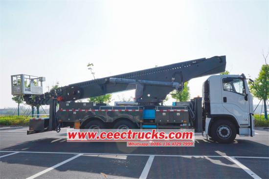 O veículo de trabalho aéreo Isuzu FVZ 56M, com seu design excepcional e desempenho poderoso, teve um bom desempenho no campo do trabalho aéreo A distância entre eixos do veículo é de 4350+1370 mm, proporcionando boa estabilidade e passabilidade Em termos de energia, ele é equipado com o motor ISUZU 6HK1-TCG60, que é poderoso e funciona sem problemas, garantindo a operação eficiente do trabalho aéreo O sistema de transmissão adota uma caixa de engrenagens de 9 velocidades rápida, que possui mudança suave e resposta rápida, melhorando ainda mais a eficiência do trabalho