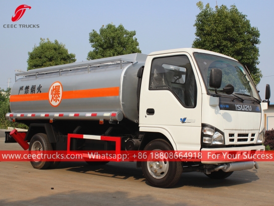 Caminhão pequeno Bowser de óleo ISUZU ( também chamado Caminhão tanque de combustível ISUZU, mini caminhão de abastecimento de combustível ISUZU, caminhão Bowser diesel de 6 rodas, caminhão de transporte de óleo ISUZU, entrega de combustível de venda quente Caminhão ISUZU, veículo de transporte de gasolina ISUZU, tanque de combustível com bowser) é usado para transportar óleo, diesel, gasolina, querosene, etc.