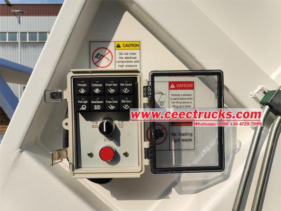 •Descarregamento e redefinição:Quando a caixa de lixo está cheia ou precisa ser descarregada, o driver opera o botão no painel de controle para fazer o retiro da placa de pressão para a posição inicial Depois, o sistema de braço do gancho coloca a caixa de lixo no local designado para descarregar