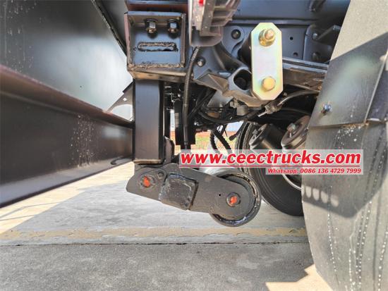•Conexão e levantamento: Quando o veículo chega ao ponto de coleta de lixo, o motorista inicia o cilindro hidráulico, operando o botão no painel de controle O cilindro hidráulico empurra o braço do gancho para baixo até entrar em contato com o gancho na lixeira e se conecta firmemente Posteriormente, o cilindro hidráulico continua trabalhando, levantando o braço do gancho junto com o recipiente de lixo até que o recipiente de lixo esteja completamente fora do chão e fixado no veículo