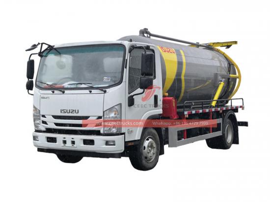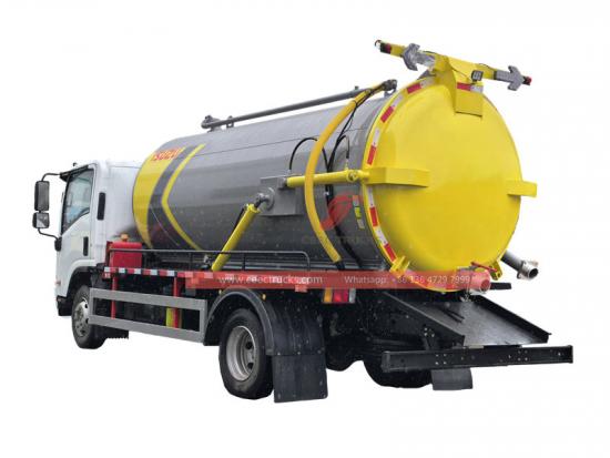 Jurop pump, Moro pump 4×4, RHD drive is optionalNo campo do saneamento municipal, Isuzu light duty 8 000L s ewage tank truck has become an industry benchmark with its excellent performance and multifunctional design. Equipped with a high quality 4HK1 engine with a maximum horsepower of 190 HP, and a powerful vacuum suction system, it can quickly dredge sewers, septic tanks and other complex scenes. The tank volume is up to 8CBM , and the operating efficiency is extremely high. It adopts a modular design and supports optional front reels, liquid level gauges and sprinklers to meet diverse needs.