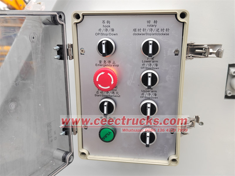O caminhão de plataforma de trabalho aéreo da Isuzu equipado com o sistema de controle da Siemens PLC, com o idioma inglês padrão, também pode ser personalizado com o idioma francês, o idioma árabe, o idioma da Rússia etc., também correspondente a nível e hidráulico para um trabalho convocativo Abaixo, mostrando a caixa de controle no caminhão de elevação aérea de Isuzu
