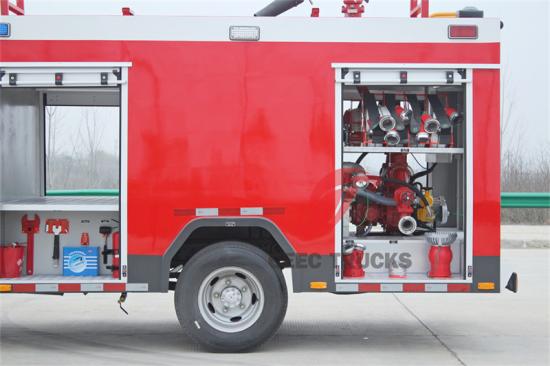 Em termos de chassis, o veículo está equipado com um motor Isuzu 100P 120HP, que é potente e pode lidar facilmente com diversas condições complexas de estrada, garantindo que o caminhão de bombeiros chegue rapidamente ao local do incêndio. A transmissão MSB de 5 velocidades correspondente possui mudanças suaves e fácil operação, proporcionando ao motorista opções de direção mais flexíveis.